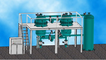 本設(shè)備在定期檢修時,可實現(xiàn)對整套系統(tǒng)不開蓋清洗再生,清洗時關(guān)閉進、出閥口、排污閥,排凈A、B罐中的介質(zhì),打開蒸汽閥,通入高溫蒸汽,對整套系統(tǒng)進行高溫沖洗,使難溶濾渣充分溶解并被排出,從而實現(xiàn)整套系統(tǒng)的再生。