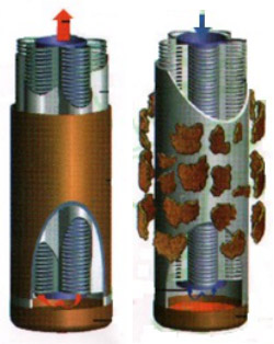n 骨架中間設(shè)置中芯管,濾后介質(zhì)從中芯管底部向上流入潔凈腔,反吹時(shí)氣體從中心管底部吹入可確保濾芯每個(gè)部位得到有效反吹,不留反吹再生死角